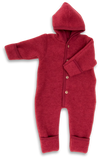 Dětský overálek s dlouhými rukávy a kapucí. Má extra záhyby na rukou i nohou aby se daly ručičky a nožičky děťátka do overálu úplně zabalit. Zapínání je na dřevěné knoflíky. Je vyroben ze 100% organické merino vlny. Vlněný flauš je velmi pohodlný na nošení, je měkoučký a přirozeně elastický takže děťátko nijak neomezuje v jakémkoli pohybu, ani neví že ho má na sobě. Je to velmi bezpečný materiál také pro citlivou pokožku či pokožku s projevy alergie. Vlna má schopnost termoregulace, proto lze overál využít během celého roku. V zimě příjemně zahřeje, dá se použít i jako spodní vstva, a je také ideální pro přechodné období i studenější letní večery, děťátko se v něm nezpotí. Chrání ho před přehřátím i podchlazením. Navíc, merino vlna je tak příjemná a měkoučká, že nesvědí ani neomíná, naopak děťátko se v ní cítí jako v obláčku.